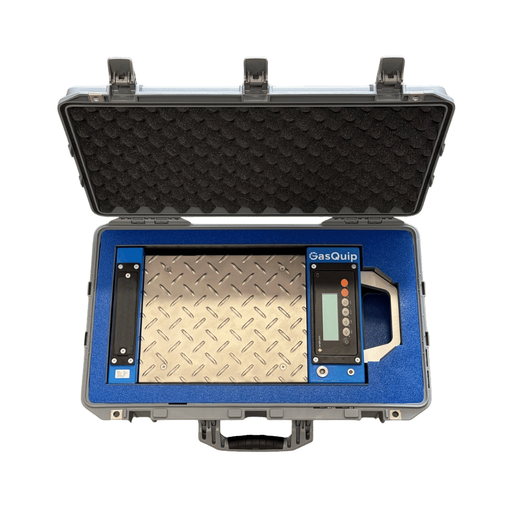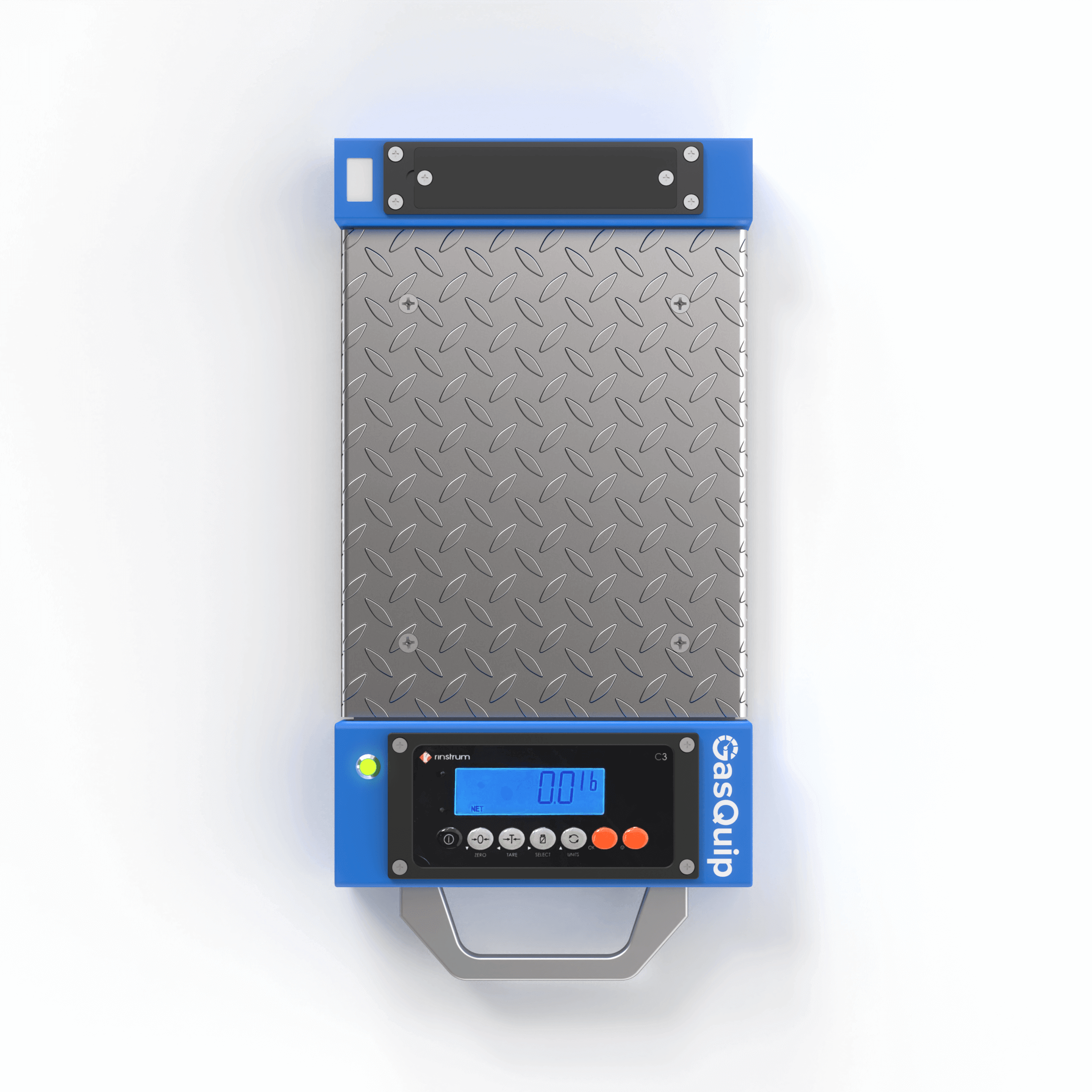 The GQ-CWS-V3 Gas Cylinder Scale V3 ensures accurate gas cylinder weight measurements either in-field or during inventory checks. Its low-profile, lightweight design, coupled with a rechargeable battery, offers enhanced portability. The optional rugged pelican case facilitates easy transportation. Features such as a 1″ high platform for rolling cylinders onto the scale, custom load cells with a rated accuracy of ±0.1 % full scale, and compliance with EPA & CARB standards make it a reliable choice for precise mass measurement in electrical transmission, distribution, manufacturing, and industrial sectors. Each scale comes with a calibration certificate traceable to the National Instrument of Standards & Technology (NIST).